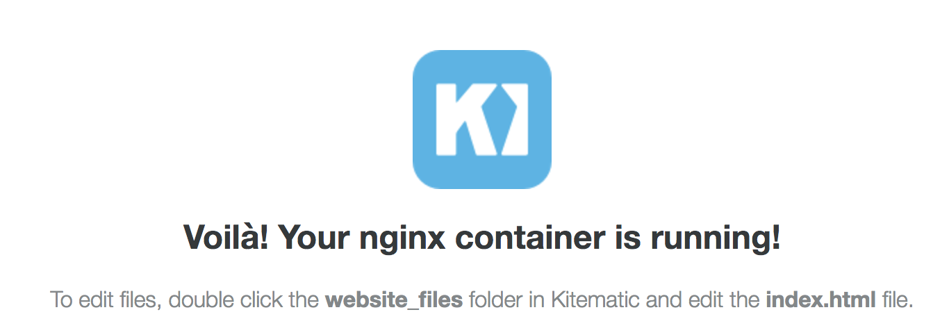 If you then go to the web address of the container, you’ll see that my container is running, although only a simple hello-world container running nginx.