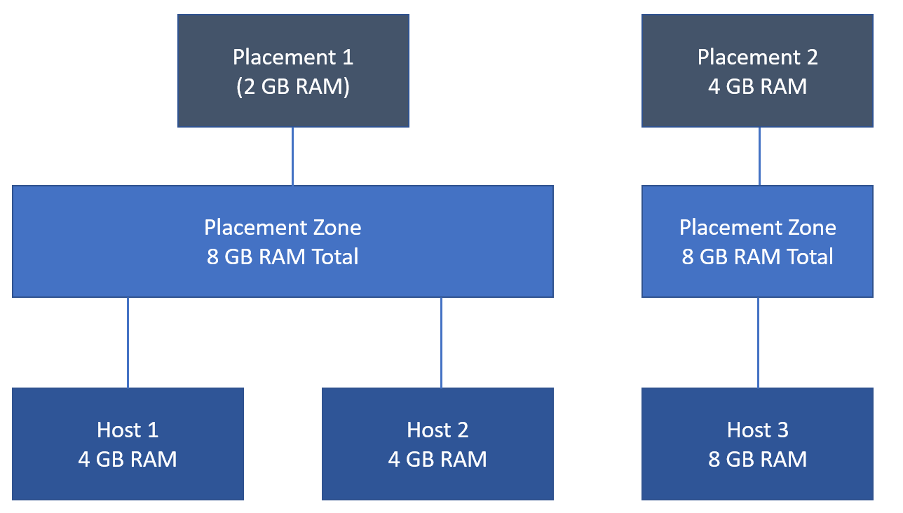 These placements are then placed into a placement zone which is simply a grouping of hosts. So you might have three different placements part of the same zone. When a user goes to deploy a container, the priority, zone and business group will determine which hosts the container may run on. The diagram below shows how you can split up placements across multiple placement zones to manage which hosts are available for the business group.