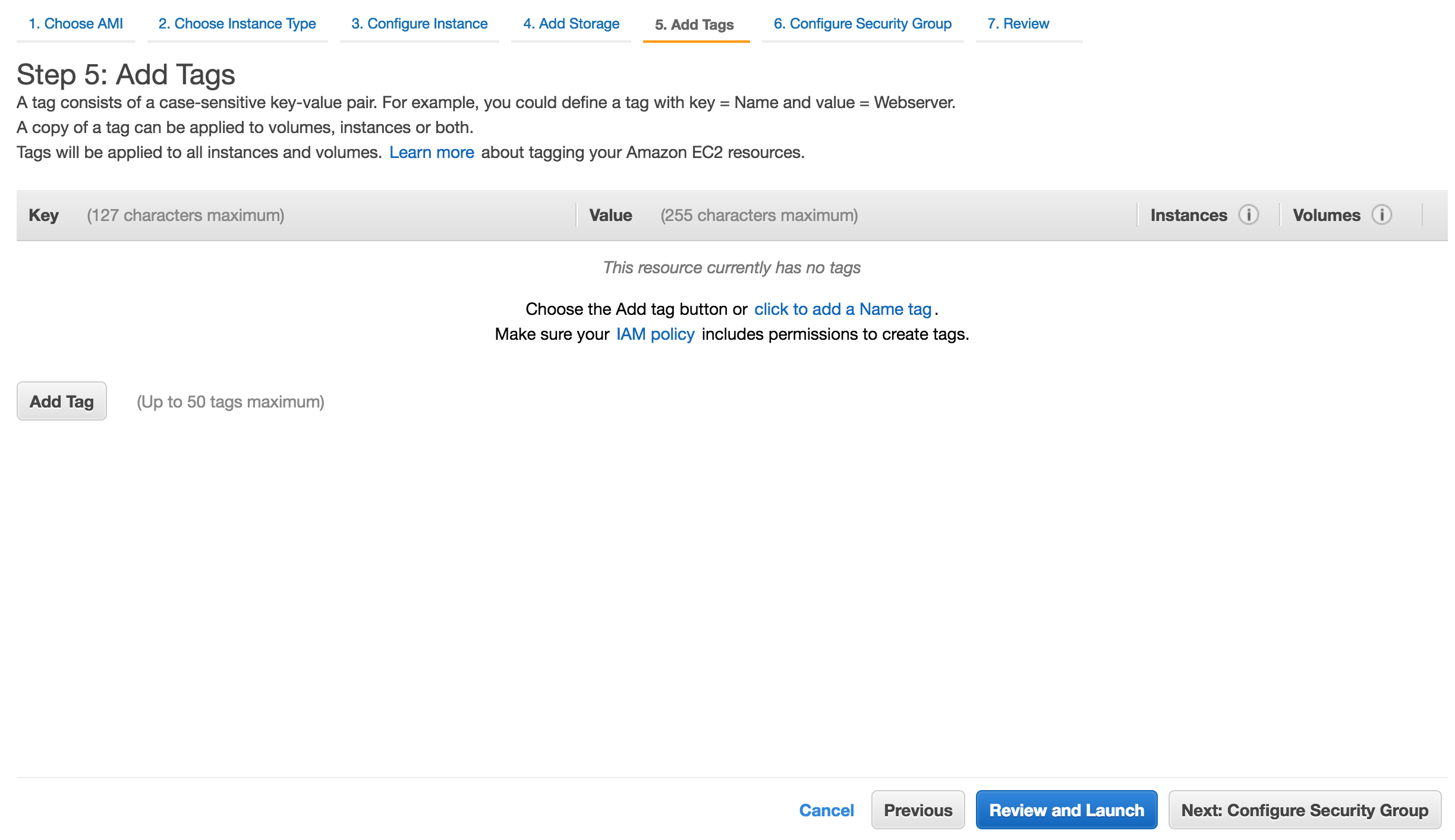 Next, you can add any tags to your instance.