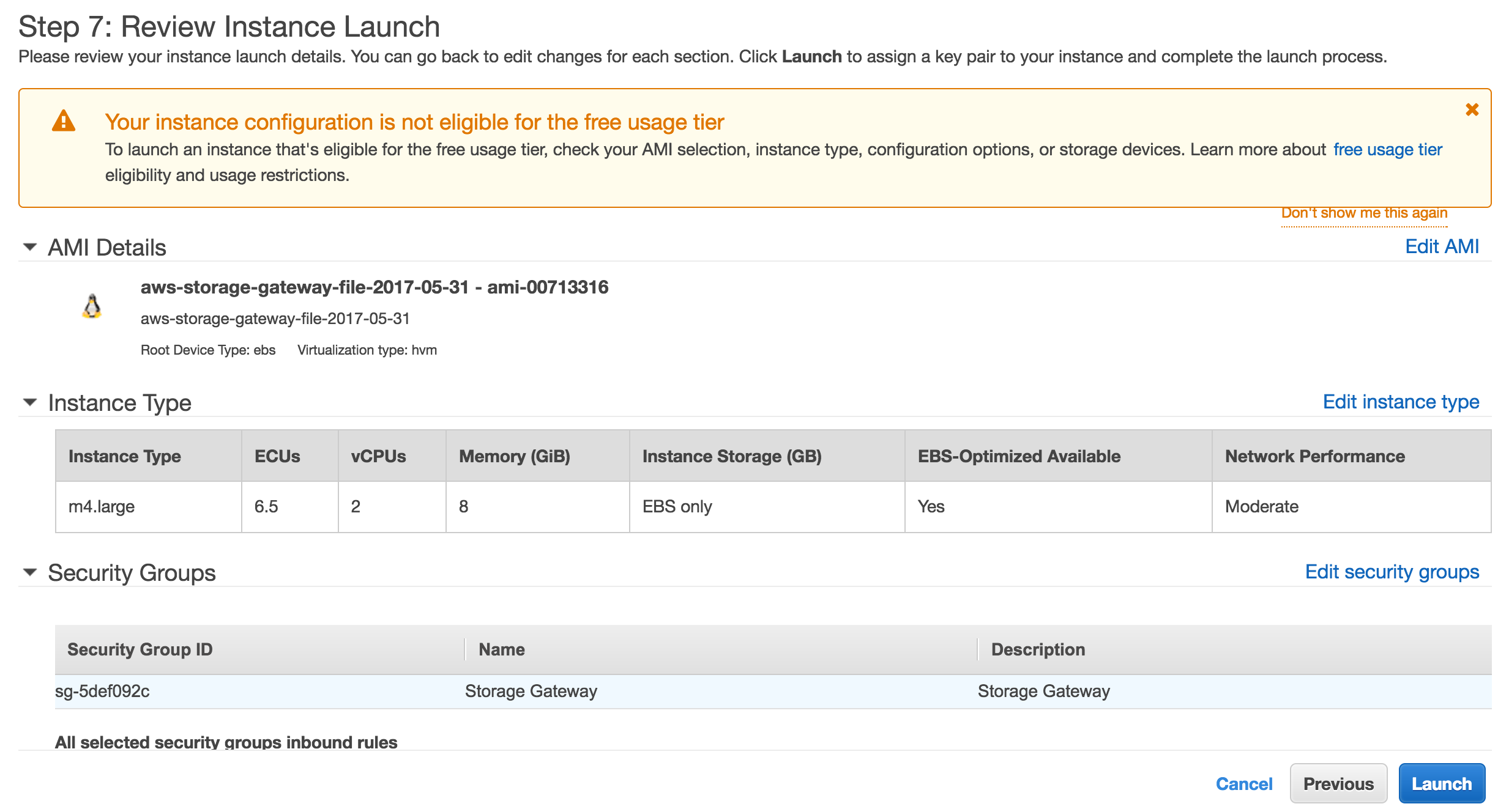 Review your settings and launch the instance.