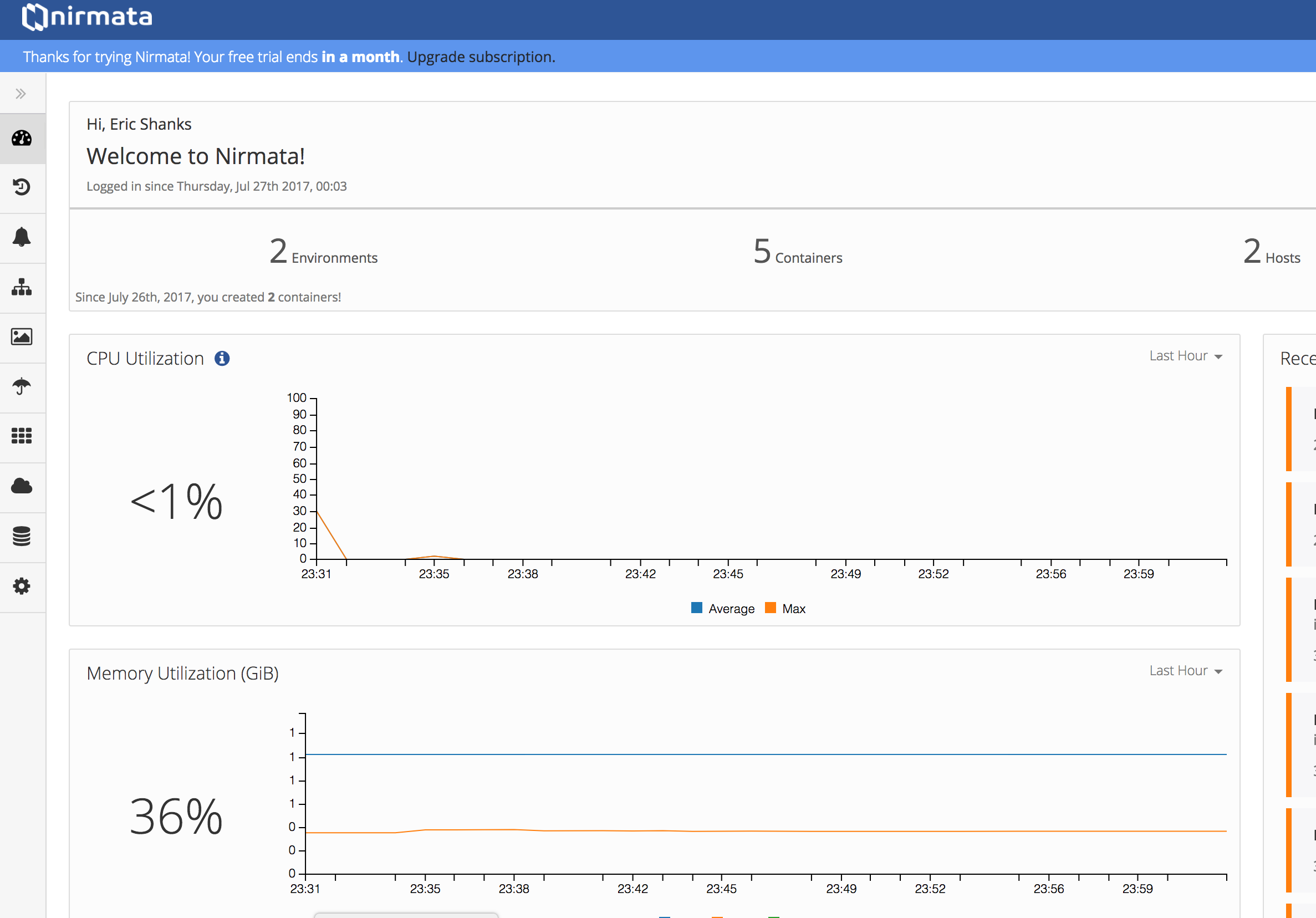 The Nirmata console shows my environments, containers, hosts, and resource utilization and I can manage everything else from here or through their API.