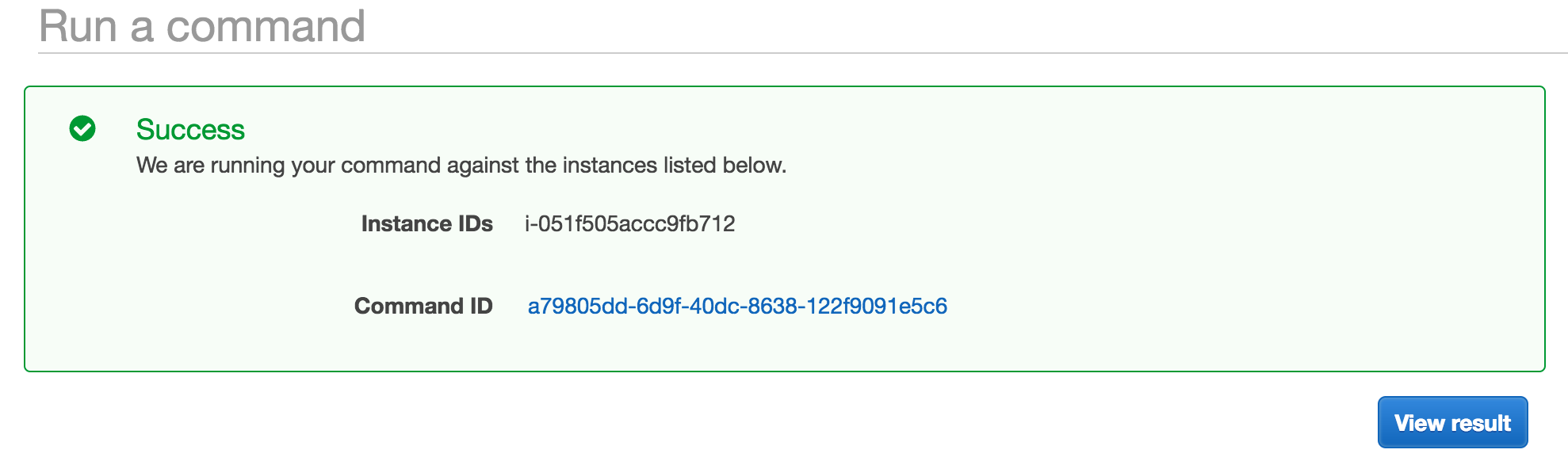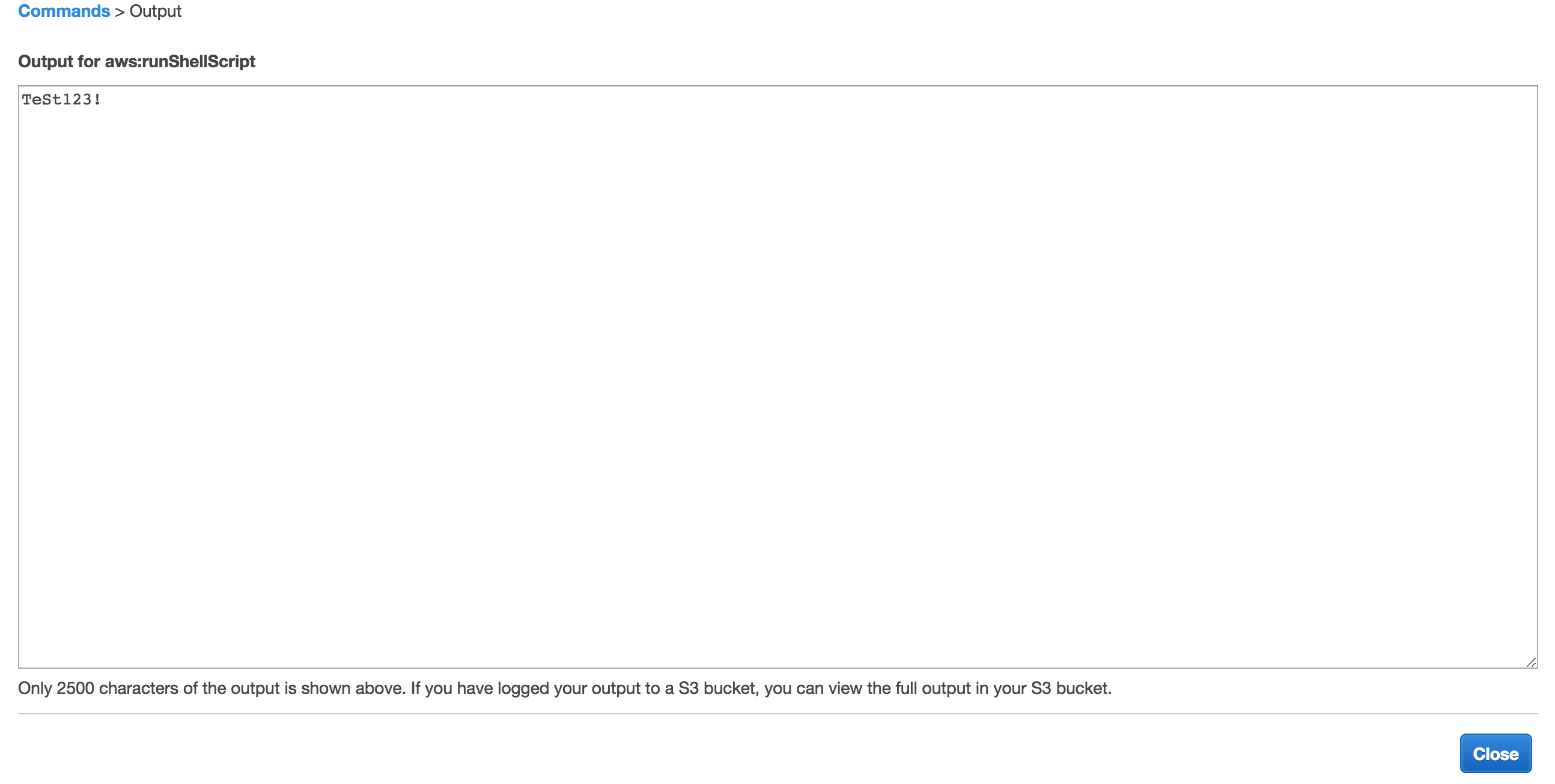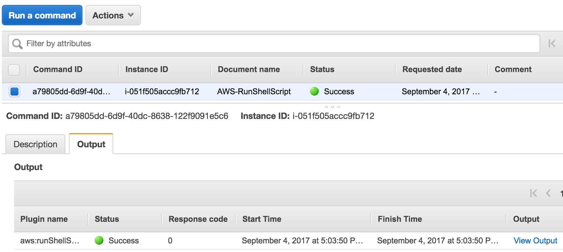 You’ll see your command run in the “Run Command” console within EC2 and then you’ll see a link that shows “View Output”. If you click that link we should see what happened when the command ran in our Linux instance.