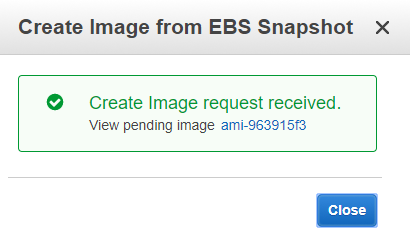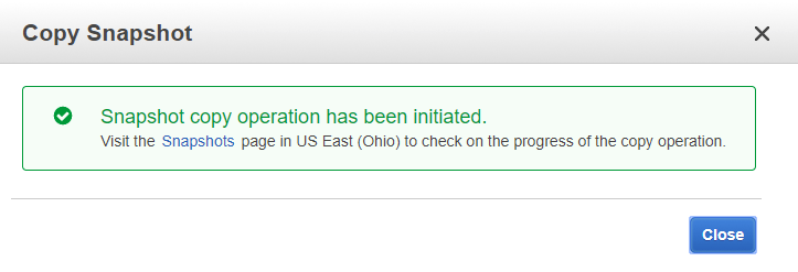 If all goes well, you should get a success message that your snapshot was created correctly. Click the “Close” button.