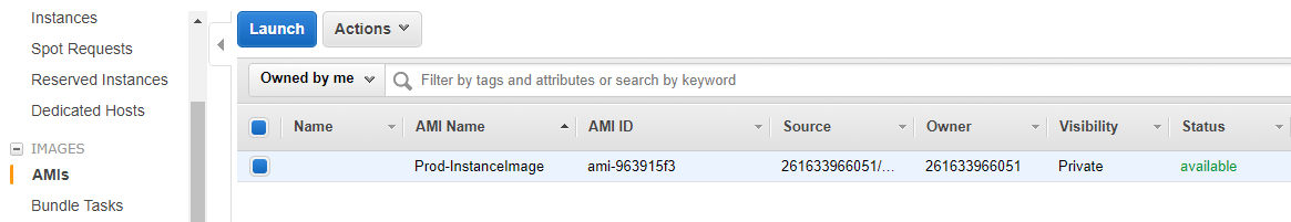 Now, if you navigate to the AMIs section of the EC2 console, you should see a new AMI with the name that you gave it in the previous step. From here, you can launch a new EC2 instance using this image and place it in whichever Availability Zone, subnet and security group that makes sense in your new region.