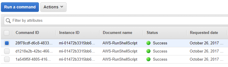 Now to run a test, lets go to the Run Command service listed in the EC2 Console navigation pane. I’ve run a few commands here as tests, but my main test was used to install Apache and deploy my basic website which the files are stored in S3.