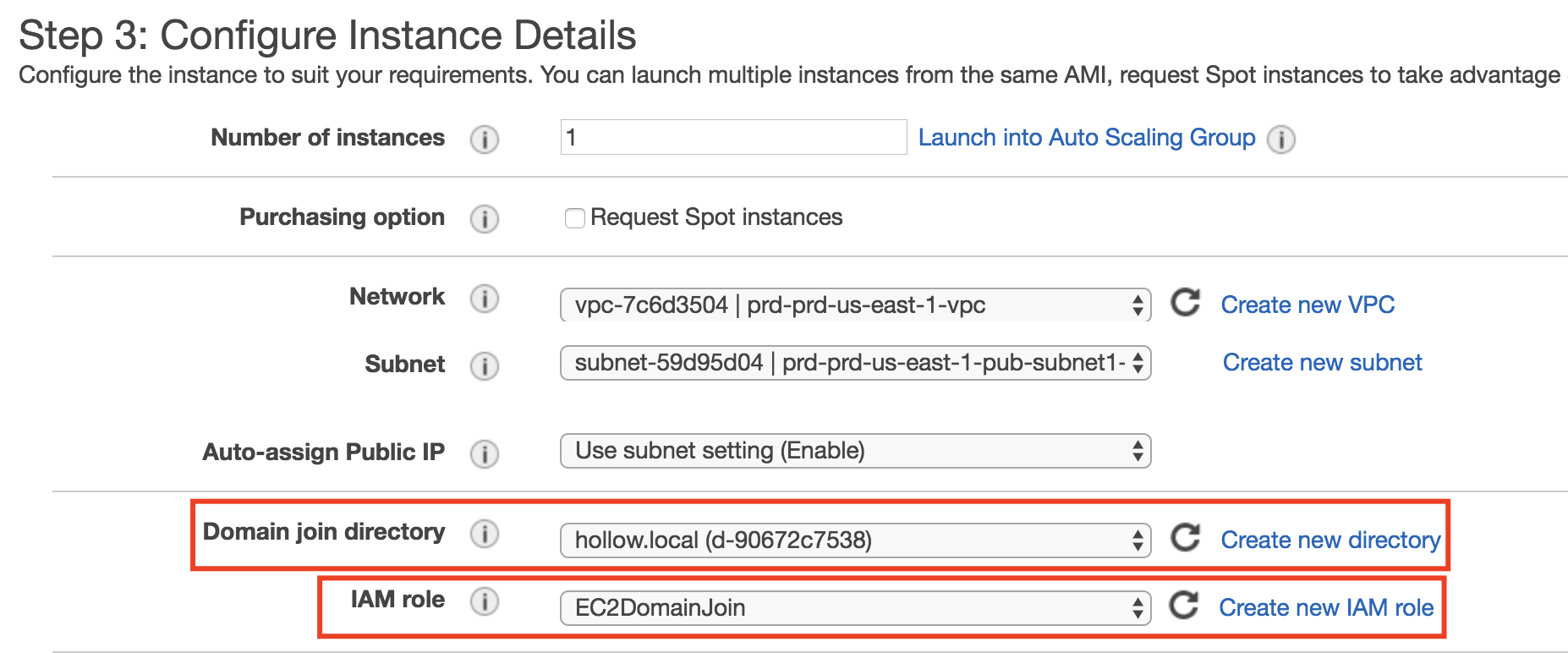 Now that your directory is setup, you can have new Windows only EC2 instances automatically join your domain when they are created. To do this it uses the EC2DomainJoin role we created earlier. To test this deploy a new EC2 instance into the VPC you used with the AD Connector. When you get to the “Configure Instance” stage of deployment, you’ll need to ensure that a few new settings are configured. Ensure that the “Domain join directory” is your new directory service and you assign the EC2DomainJoin role to the instance at creation.