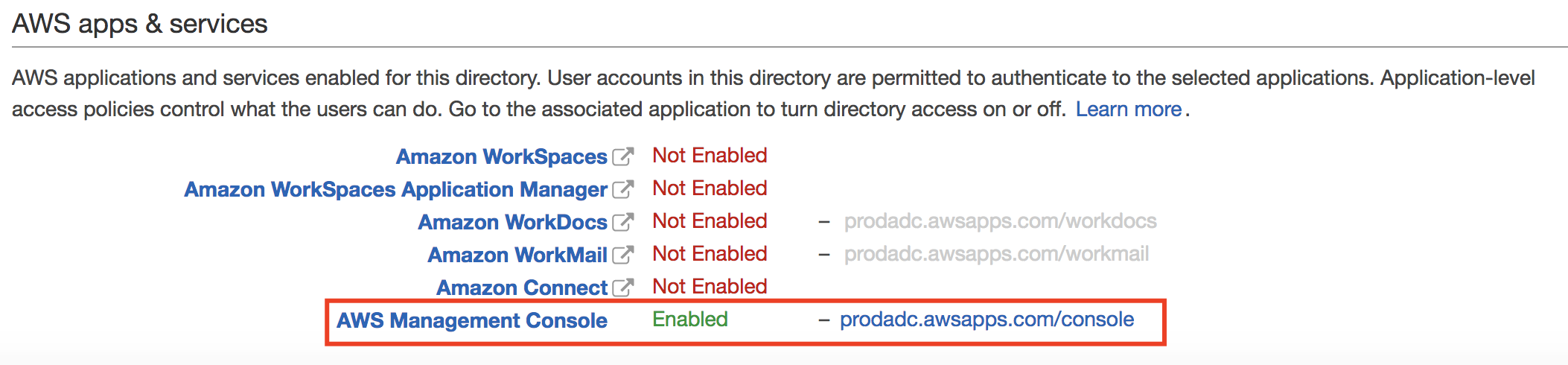 Once you’ve created the role, go back to your directory and click the Management Console Access link.