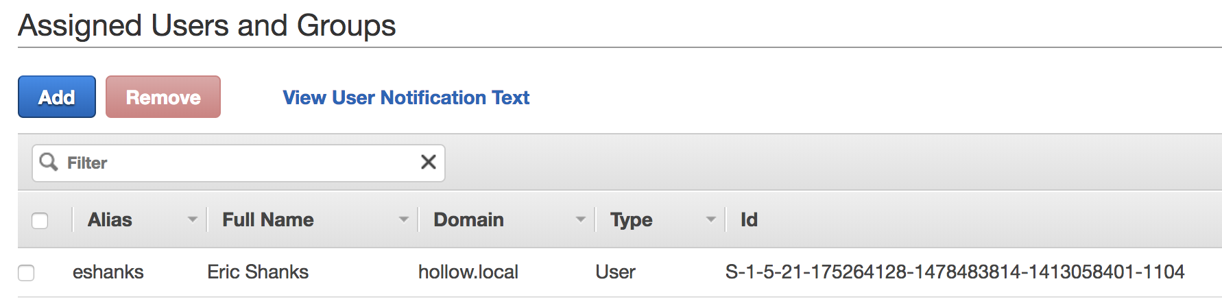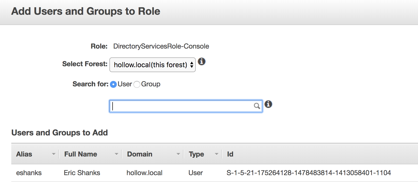 From here you’ll see a section for Users and Groups to Roles. A single Role will be listed which is what was just built in the previous few steps. Click the role to assign users from your on-premises domain.