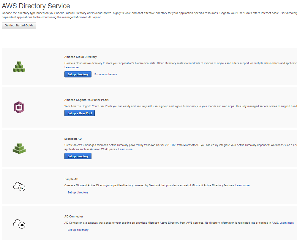 When the Directory Service page opens up you’ll see several options available to you, but for this post, choose AD Connector.