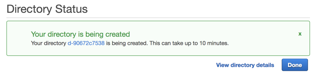 Click “Continue” to proceed with creating an endpoint. Notice that you can’t change it later. Click Continue. There are other services integrated with AWS Directory Services but for this example, we’ll just use the Management Console. Navigate back to your directory service details and look towards the bottom of the screen under AWS apps & services. Click the AWS Management Console. When the new window opens click the “Enable Access” button.