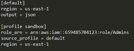 You can also modify the .aws/config file to include any roles that you might want to role switch into. To do this, you would give the profile a name and then specify the role_arn of the role that you’d be switching into as well as the profile that would be allowed to switch from.