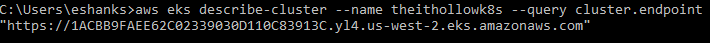 aws eks describe-cluster --name [clustername] --query cluster.endpoint