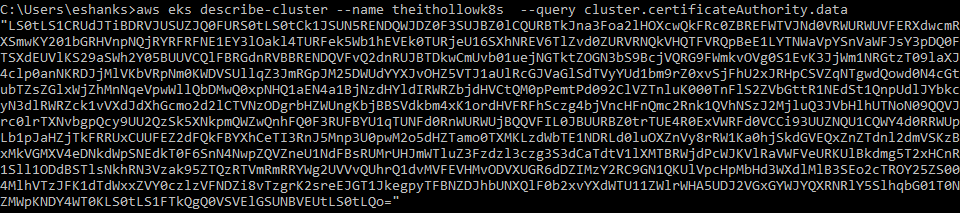 aws eks describe-cluster --name [clustername] --query cluster.certificateAuthority.data