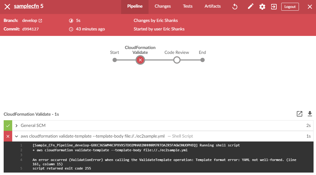 I took a very basic CloudFormation Template and ran it through my Jenkins pipeline. The CloudFormation template that I used is here for reference.