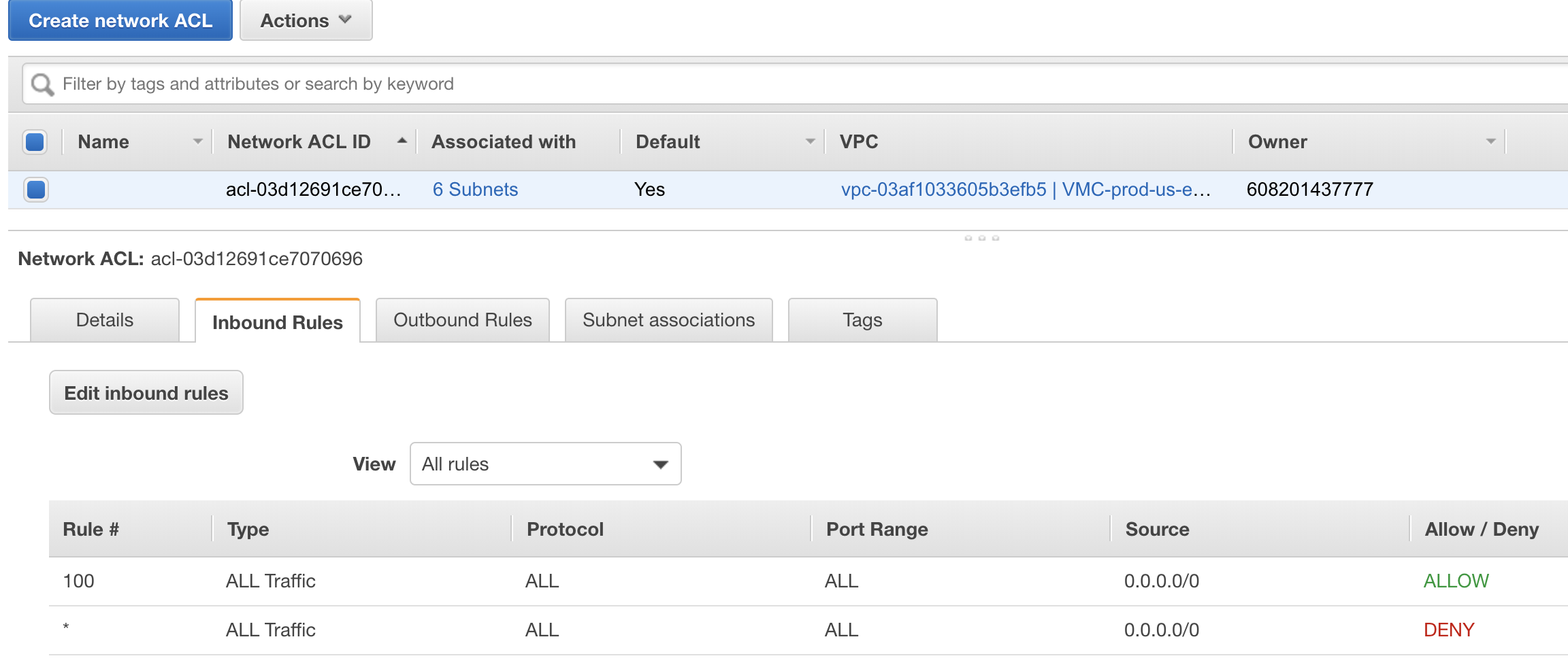 This is configured in the AWS console under the EC2 screen. It should also be noted that the VMC may create several of these ENIs when its first built, so you’ll need a security group attached to all of them with your configured rules. By default, VMware creates the rules for you but it uses a default security group from AWS. Be aware of this because many customers don’t want to use a default security group and want to create their own.