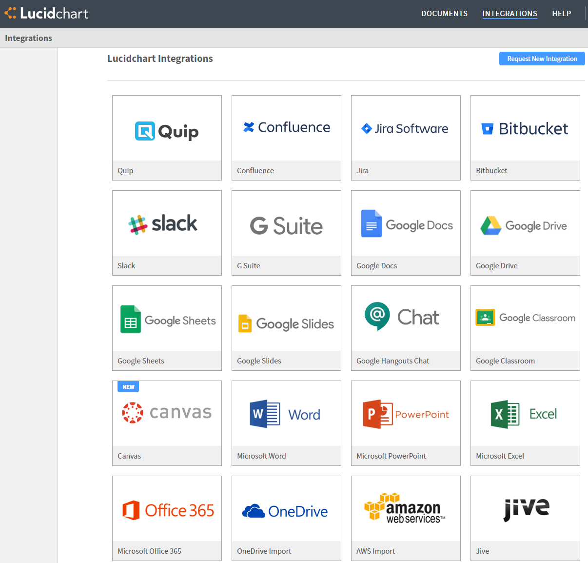 So what are integrations? Well as you might guess its a way for a third party to use Lucidchart to build diagrams. The example that I’ll show in this post is using the Amazon Web Services integration to automatically build a diagram of my environment but there are a whole list of integrations available for you to utilize. Simple go to the Integrations link in your Lucidchart account, select and install the integration you’re interested in and you’re ready to get started.