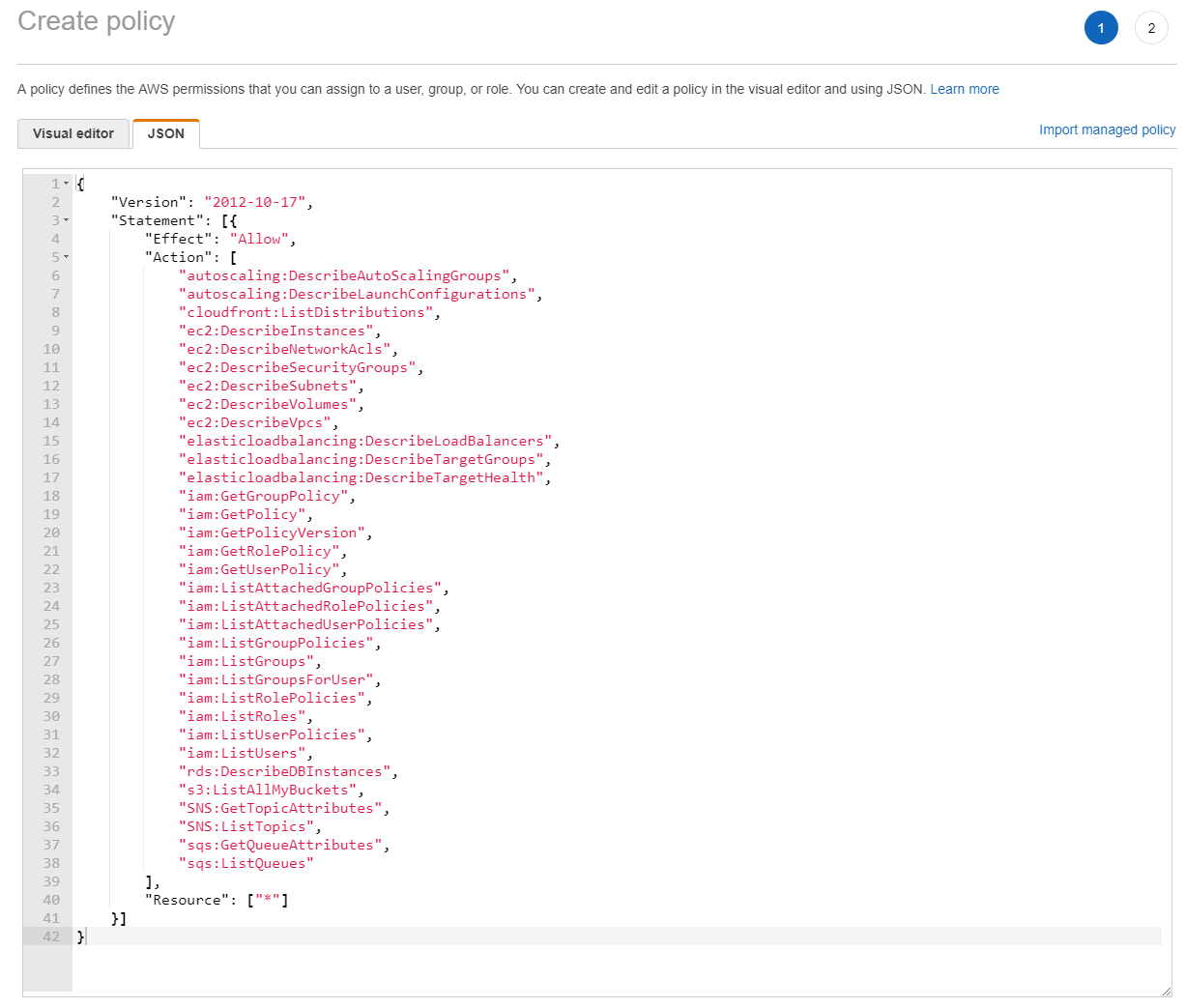 The role permissions can be directly copied and pasted into the JSON tab in the AWS IAM console to make setting up the IAM role a quick and easy procedure.