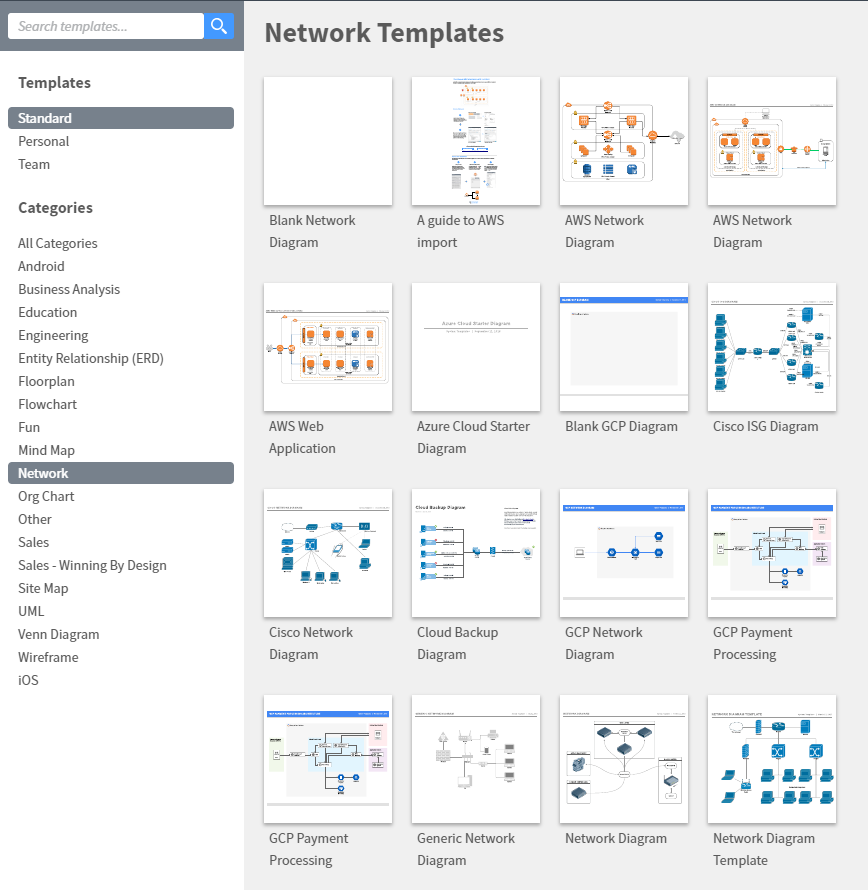 To get started create a new diagram from the “More Templates” option in Lucidchart account.