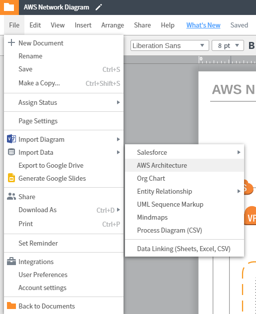 Once your new template is open, go to File –> Import Diagram and then choose AWS Architecture.