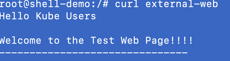 The curl command worked when performing a request against the “external-web” service, so we know it’s working!