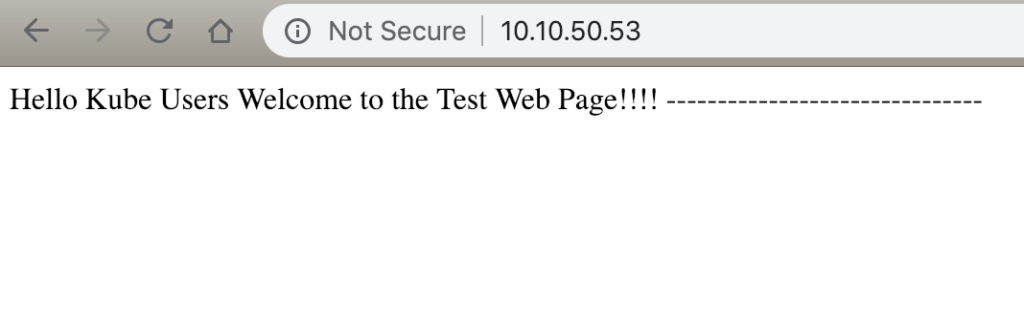 Let’s look at an example where we’re using an endpoint to access an external resource from a container. In this case we’ll access a really simple web page just for a test. For reference, I accessed this service from my laptop first to prove that it’s working. If you’re doing this in your lab, you’ll need to spin up a web server and modify the IP Addresses accordingly.