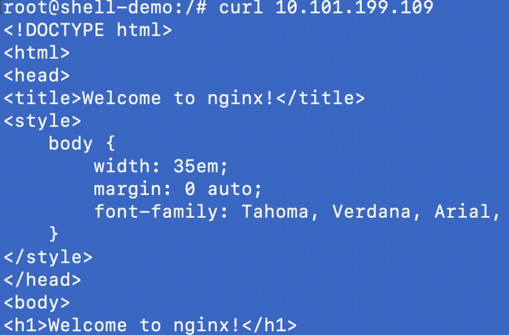 Once you’ve run the two commands above, you’ll have a new pod named shell-demo and you’ve gotten an interactive terminal session into the container. Now we need to update the container and install curl.