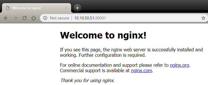 If we access the IP Address of one of our nodes with the port we specified, we can see our nginx page.