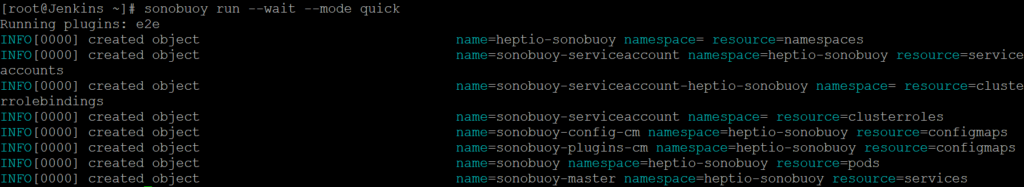 I’ve run the sonobuoy command with the –mode quick switch so that the test will do some very basic checks. You can remove this for the full test which will of course take longer.