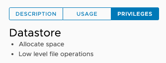 Role to be AssignedEntityPropagate?****manage-k8s-node-vmsCluster, Hosts, k8s nodes VM FolderYesmanage-k8s-volumesDatastore where new volumes will be createdNok8s-system-read-and-spbm-profile-viewvCenterNo**Read-Only (pre-created)**Datacenter, Datastore, Cluster, Datastore Storage FolderNo