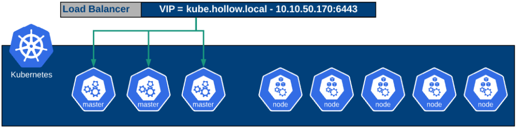 Before we start configuring and deploying Kubernetes, we need to ensure we have the proper environment setup. My lab will consist of three ubuntu virtual machines used for control plane (masters) nodes, and five additional machines for worker nodes. Your environment can vary with the number of nodes, but I’ve chosen to use three control plane nodes to show the high availability configurations. My environment looks roughly like this diagram: