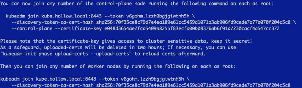 When the process is done, you should receive instructions on how to add additional control plane nodes and worker nodes.
