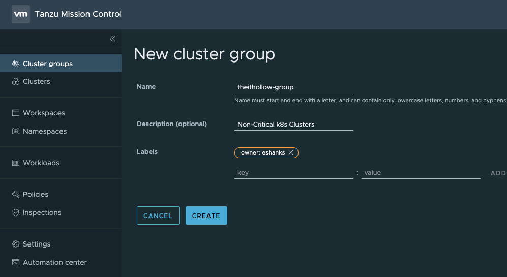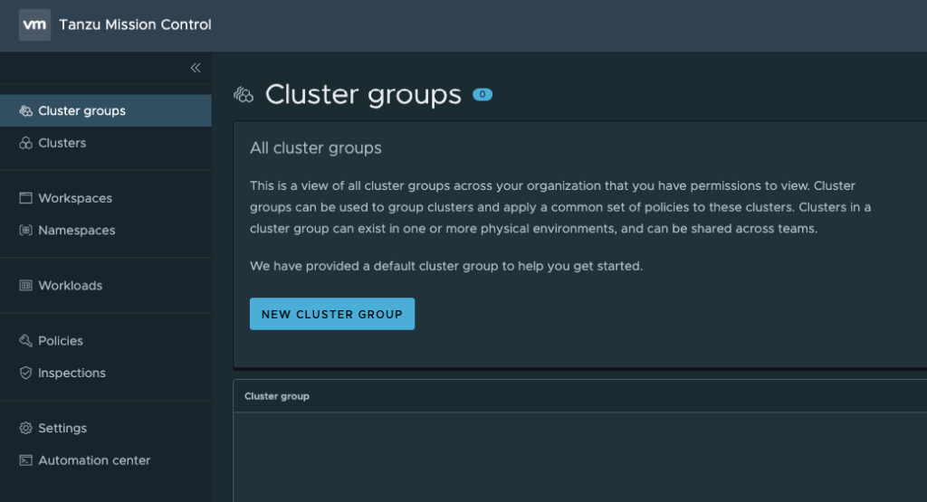 I’ve written about deploying clusters in the past, but if you are a TMC customer, those steps can be skipped altogether. TMC will let us deploy a Kubernetes cluster and add it to management, all from the GUI or CLI.