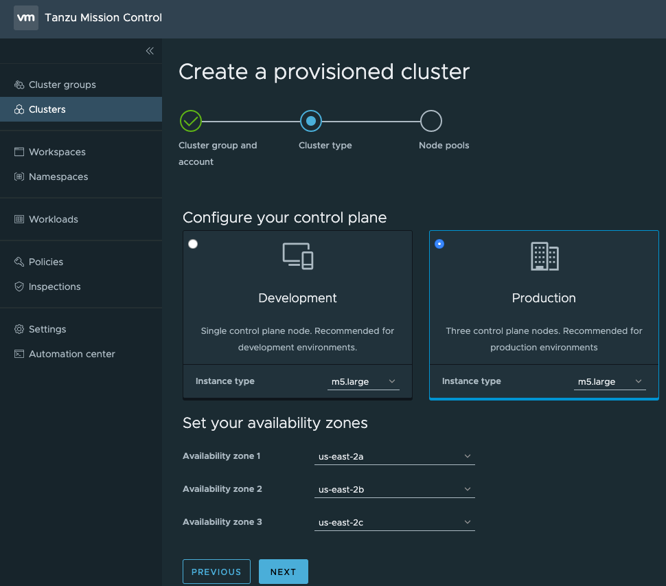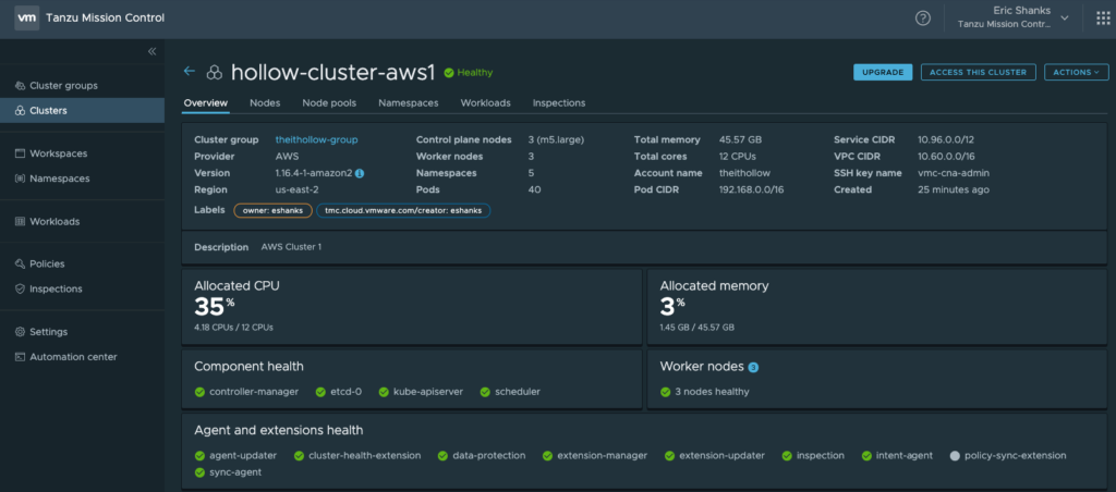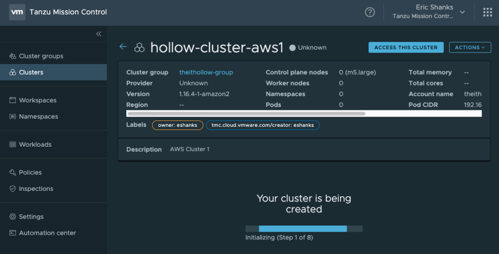 When you click create, you can switch over to your AWS console and watch the new resources get spun up for you. You could also watch the TMC console for updates.