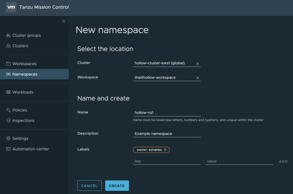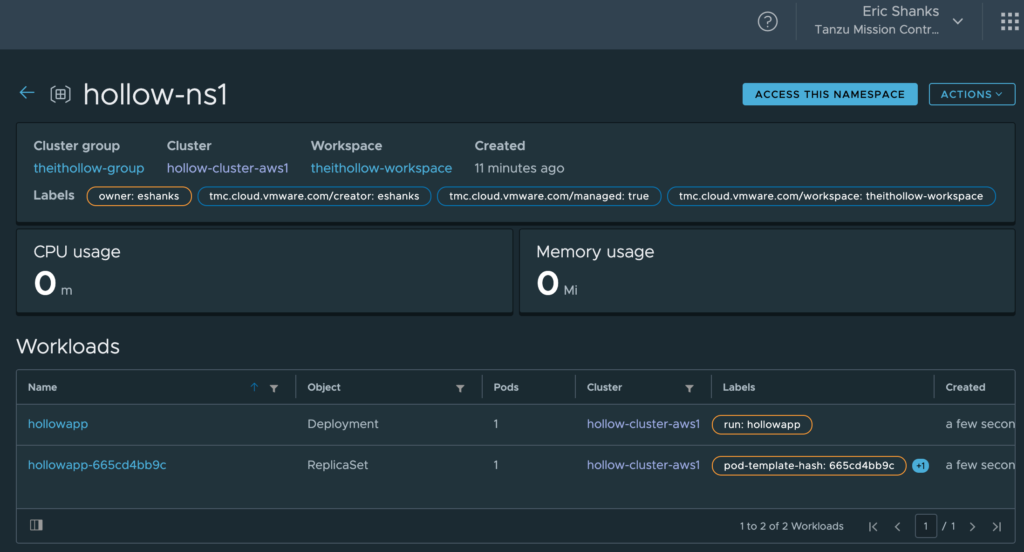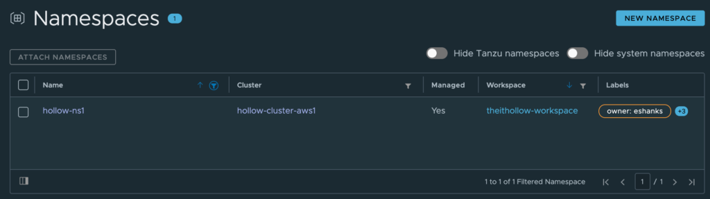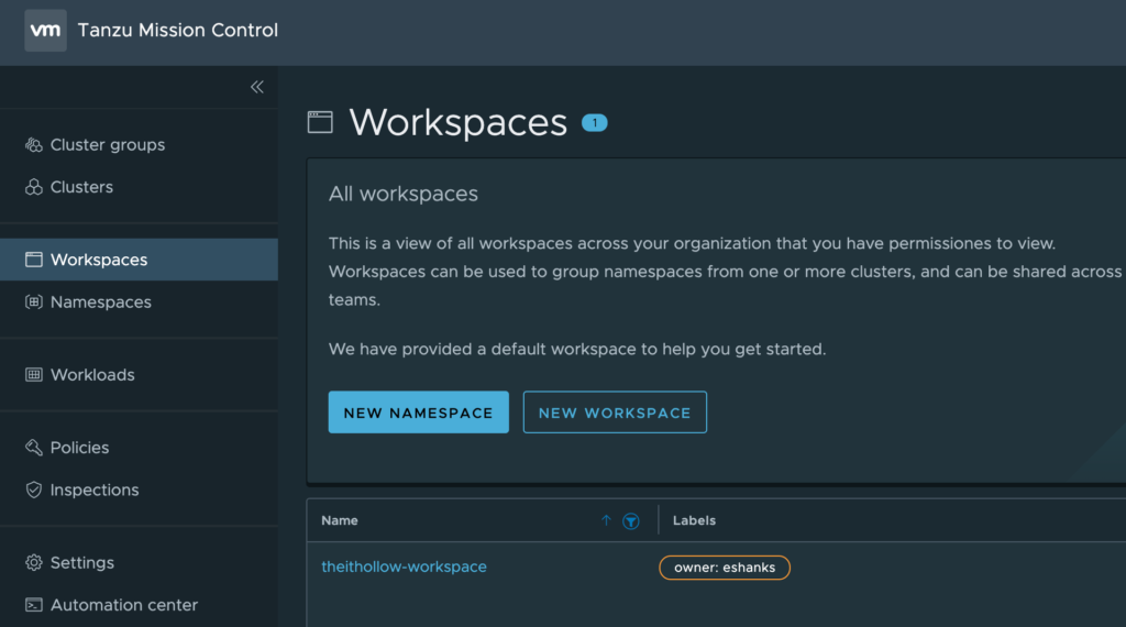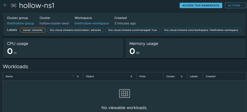 This has been a nice way to create a namespace from TMC. It should be noted that you can create additional namespaces from within the cluster as well if needed. Not all namespaces need to be under TMC management.