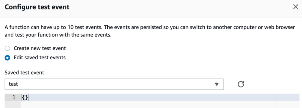 Configure your test event at the top of the same screen and pass an empty set. Save the function and run it as you wish.