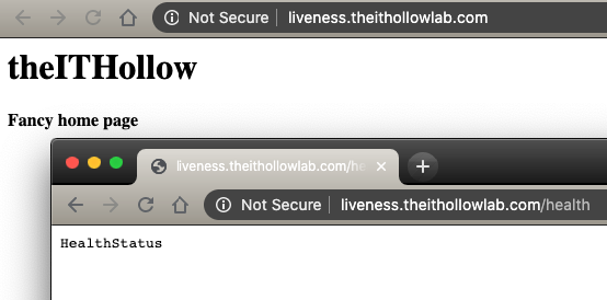 My container uses a script to start the HTTP daemon right away, and then waits 60 seconds before creating a /health page. This is to simulate some work being done by the application and the app isn’t ready for consumption. This is the entire website for reference.