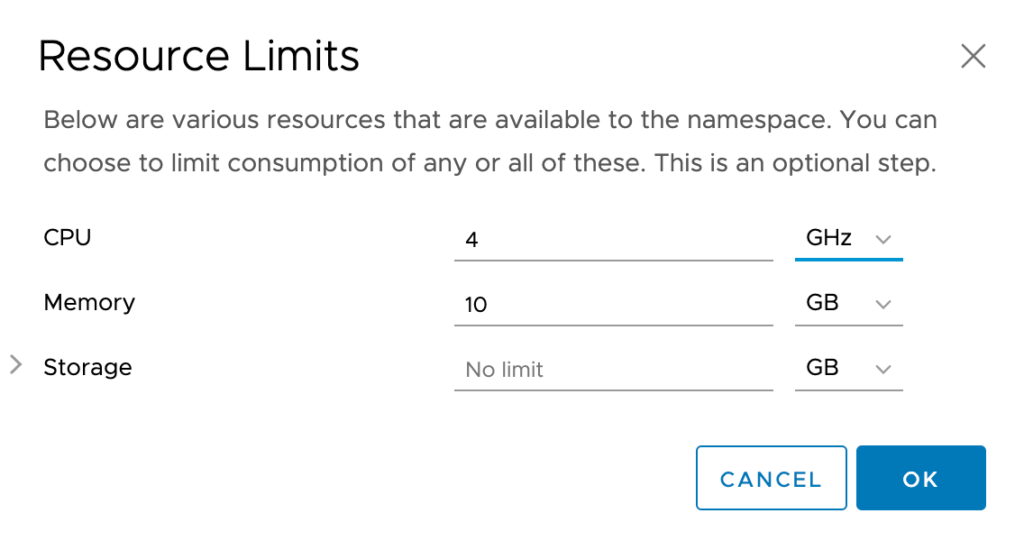Depending on your past experiences, a namespace will likely seem familiar to you in some fashion. If you have a kubernetes background, you’ll be familiar with namespaces as a way to set permissions for a group of users (or a project, etc) and for assigning resources. Alternatively, if you have a vSphere background, you’re used to using things like Resource Pools to set resource allocation.