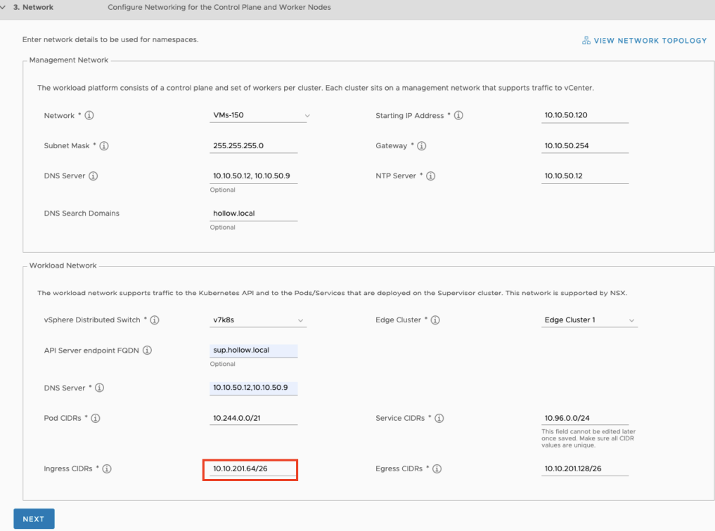 Notice the IP Address in the URL. It should seem pretty familiar to you because you entered the CIDR range during the workload control plane setup. Remember setting up the Ingress CIDRs? This is where the IP Address came from.