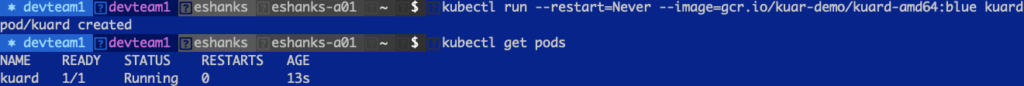 And after that you can start running Kubernetes commands. In the below screenshot, I’ve deployed the “Kubernetes Up and Running” container which you can see is running.