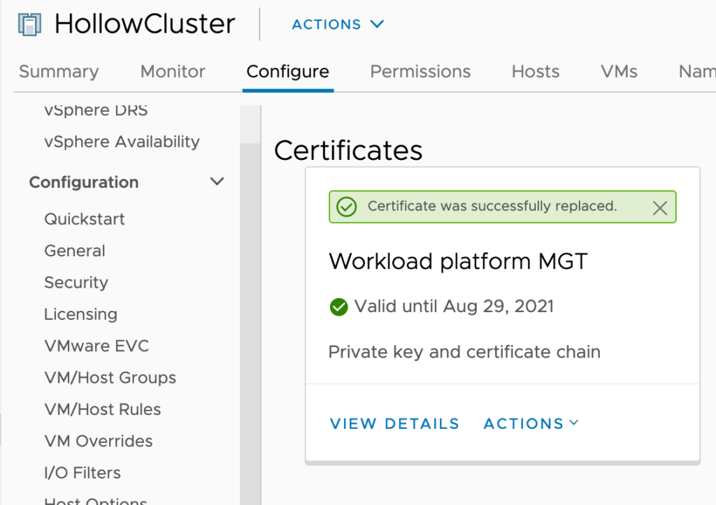 When you’re done, you should see that the certificate was replaced.