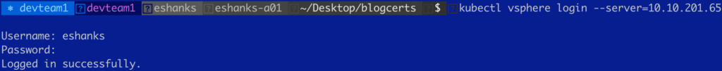 If you’d like to check your cli access now as well, try running a kubectl vsphere login command to see if you still need the --insecure-skip-tls-verify flag set. You shouldn’t need to use this anymore since your endpoint has a trusted certificate now.