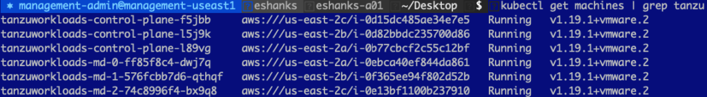 If you watch this operation in full, you’ll see that new nodes will be provisioned and joined to your cluster. Once they are healthy, tkg will remove the old node and effectively replaced it. This same process can be used for upgrades.