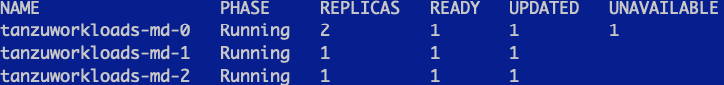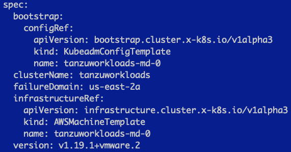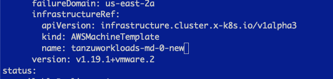 kubectl get machinedeployment tanzuworkloads1-md-0 -o yaml