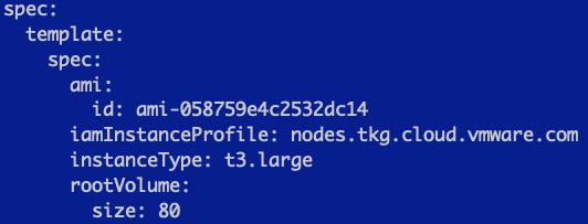 iamInstanceProfile: nodes.tkg.cloud.vmware.com