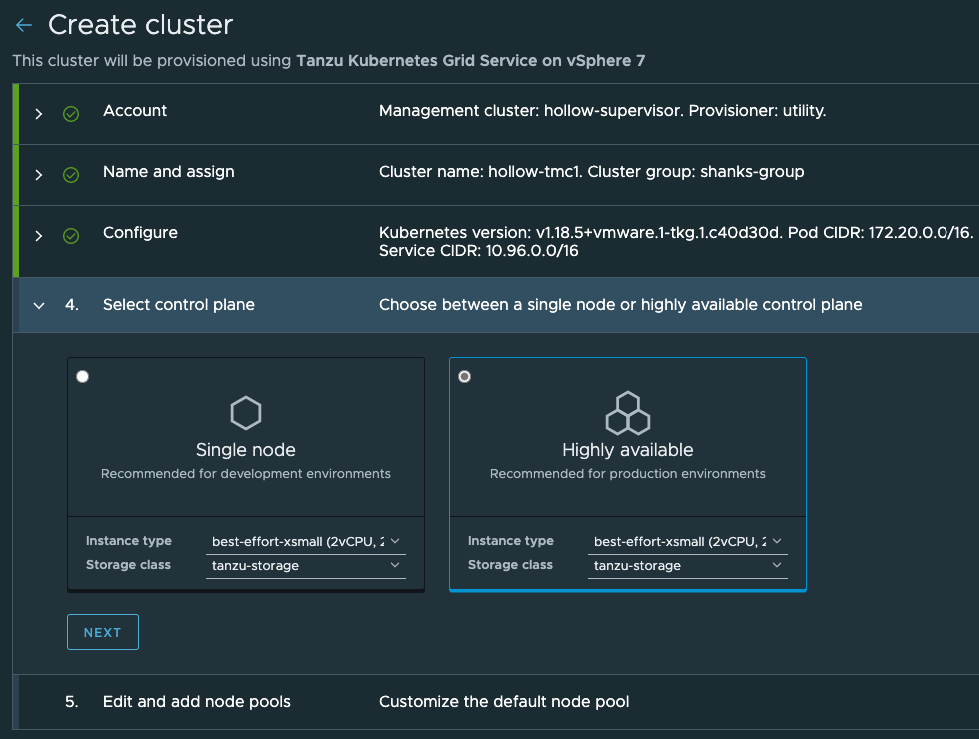 You’ll also need to select a storageclass and size for the control plane nodes.