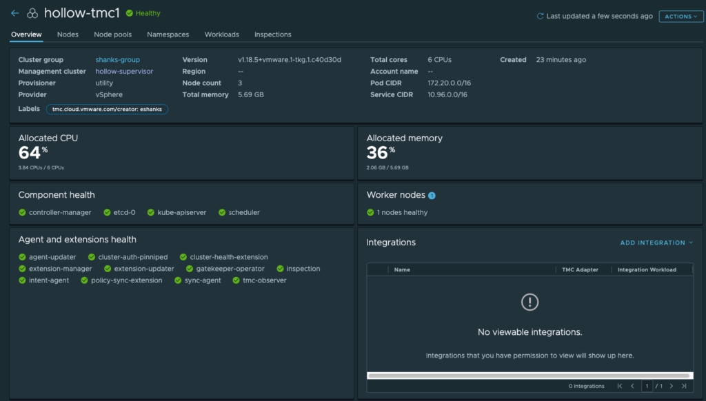 Notice the Provisioner in TMC matches my Namespace in vCenter’s Workload Management Tab.