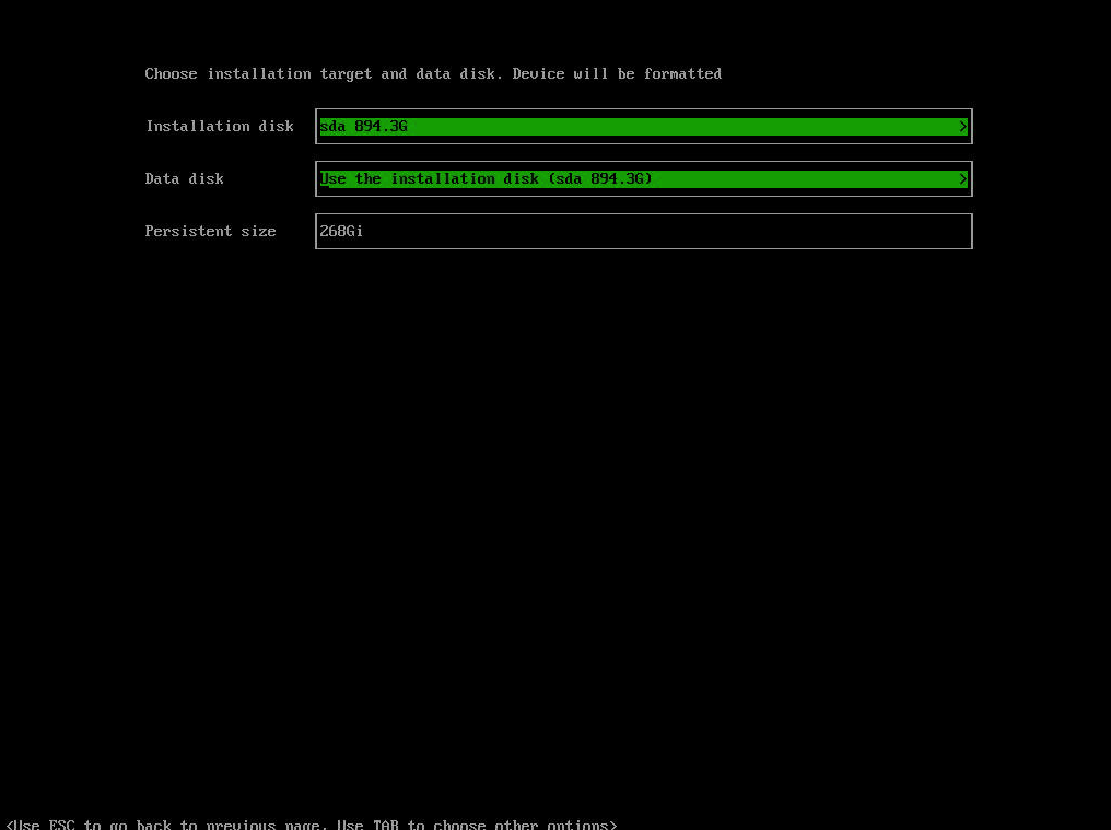 To deploy the harvester cluster we need to select a disk to install it on. Select your disk and hit enter.