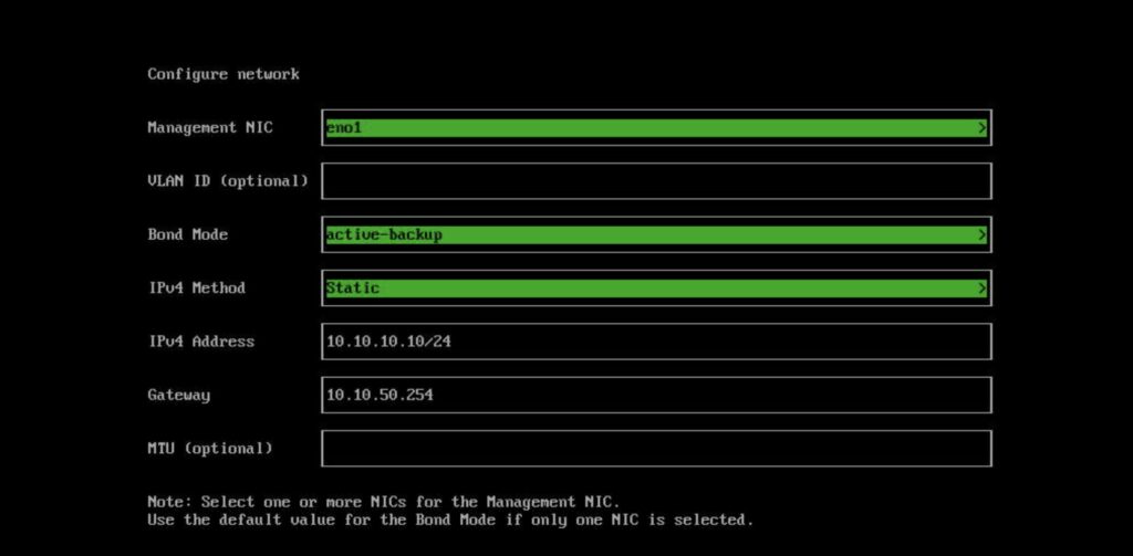 Again, setup your management network for your nodes. Don’t forget to choose multiple NICs to provide HA if you need it.