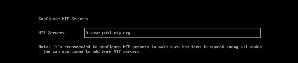 Specify the NTP server. The NTP servers should match across each node in the cluster ideally.