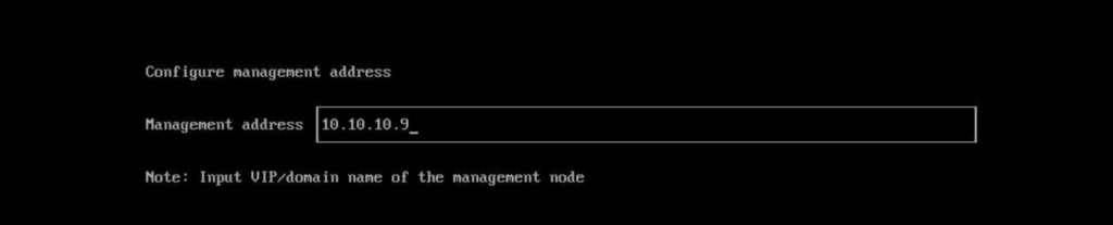 For the management address, specify the VIP that was created during the installation of your first Harvester node.
